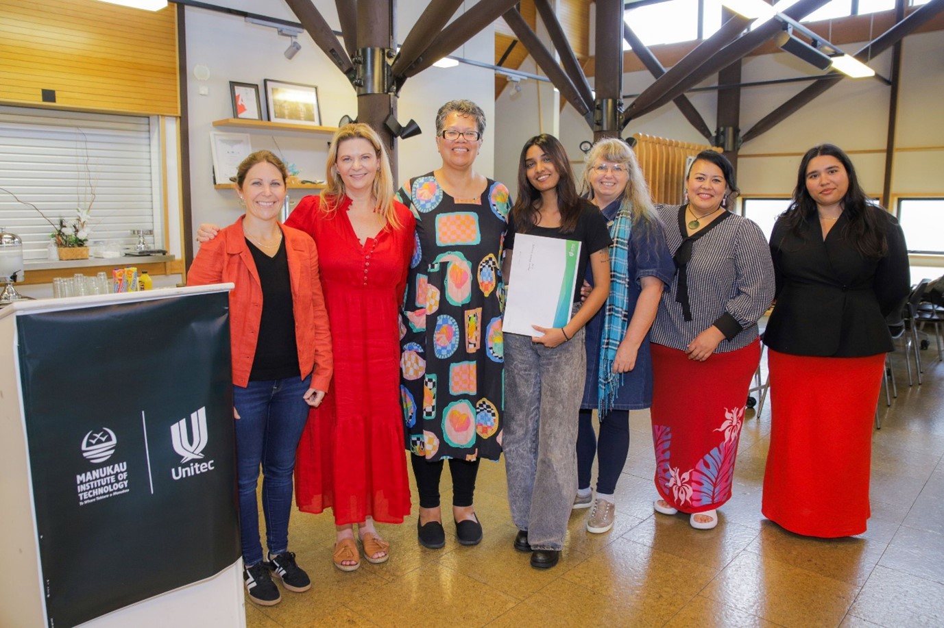 “The competition truly highlighted the strength of MIT and Unitec’s vocational education research ecosystem. I want to acknowledge the Unitec Marae Team including Kaihaūtu, Harawira Pearless and the fantastic panel of judges for their time and expertise. They were Laura Harvey (Unitec), Gregor Steinhorn (Tūāpapa Rangahau), Robert Shaw (MIT), Associate Professor Dion Enari (Unitec) and Associate Professor Deb Heke (Unitec